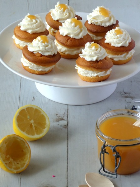 Leg een theelepeltje lemoncurd op de ricotta en zet de bovenkant van de cupcake er op.